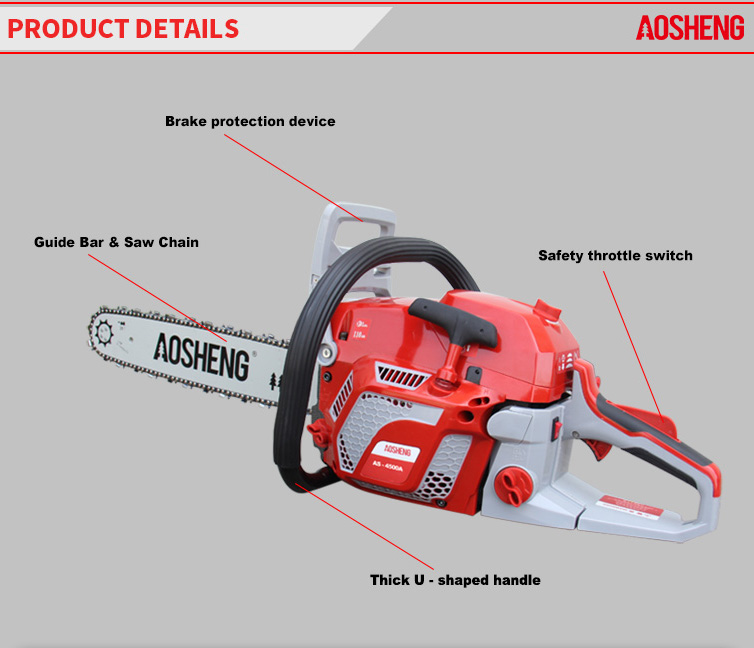 Kotiin / Tuotteet / Bensiinimoottorin puutarhatyökalut / ketjusaha / AS5800A Tehokas moottorisaha