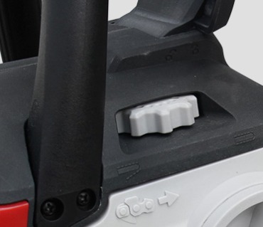 | 02Ketjun takaisku jarrukahvaToimii vivuna ketjujarrun aktivoinnille. Se tarjoaa myös suojaa projisoivia haaroja ja auttaa estämään vasenta kättä koskettamasta sahan ketjua, jos se liukuu etukahasta. |